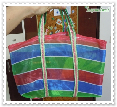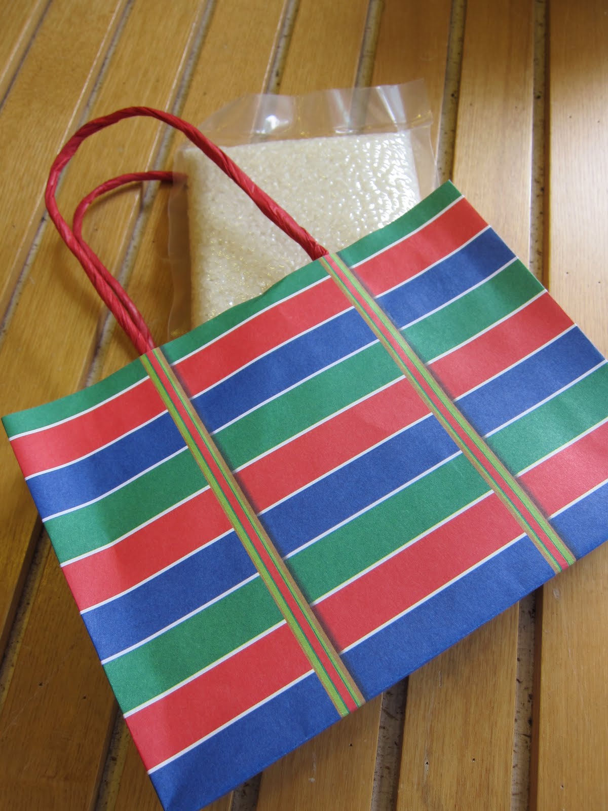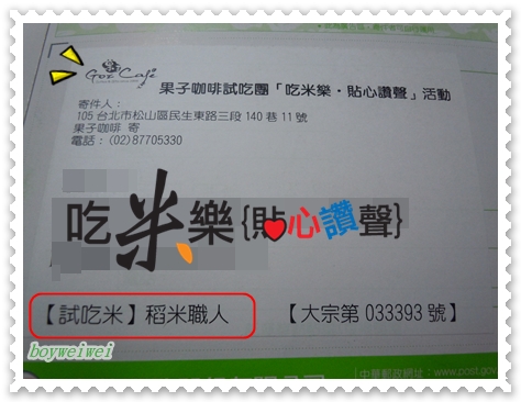 準備開封囉!收到的稻米職人,還附上一個手提袋,是復古風~阿嬤的"咖網"~~