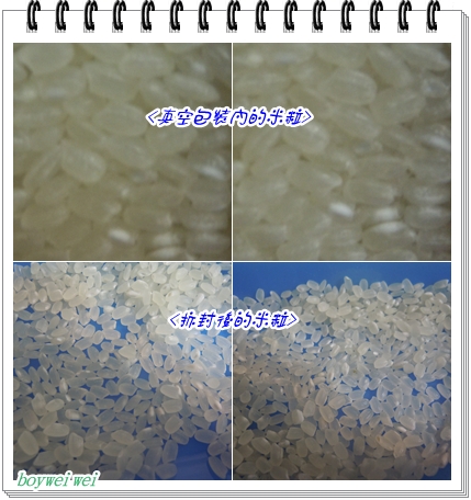 真空包裝袋內的米粒,可以看到粒粒都很圓潤。拆封後可以看到晶瑩剔透的米粒喔~~