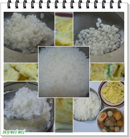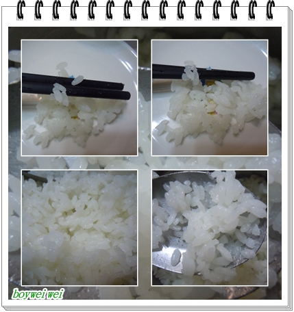 浸泡後的米粒吸飽了水份,看起來美美的~~煮好的白飯香Q有彈性。