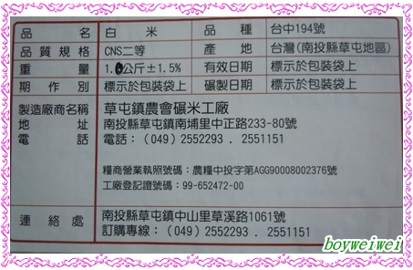 合歡香米:南投草屯:台中194號:草屯鎮農會。